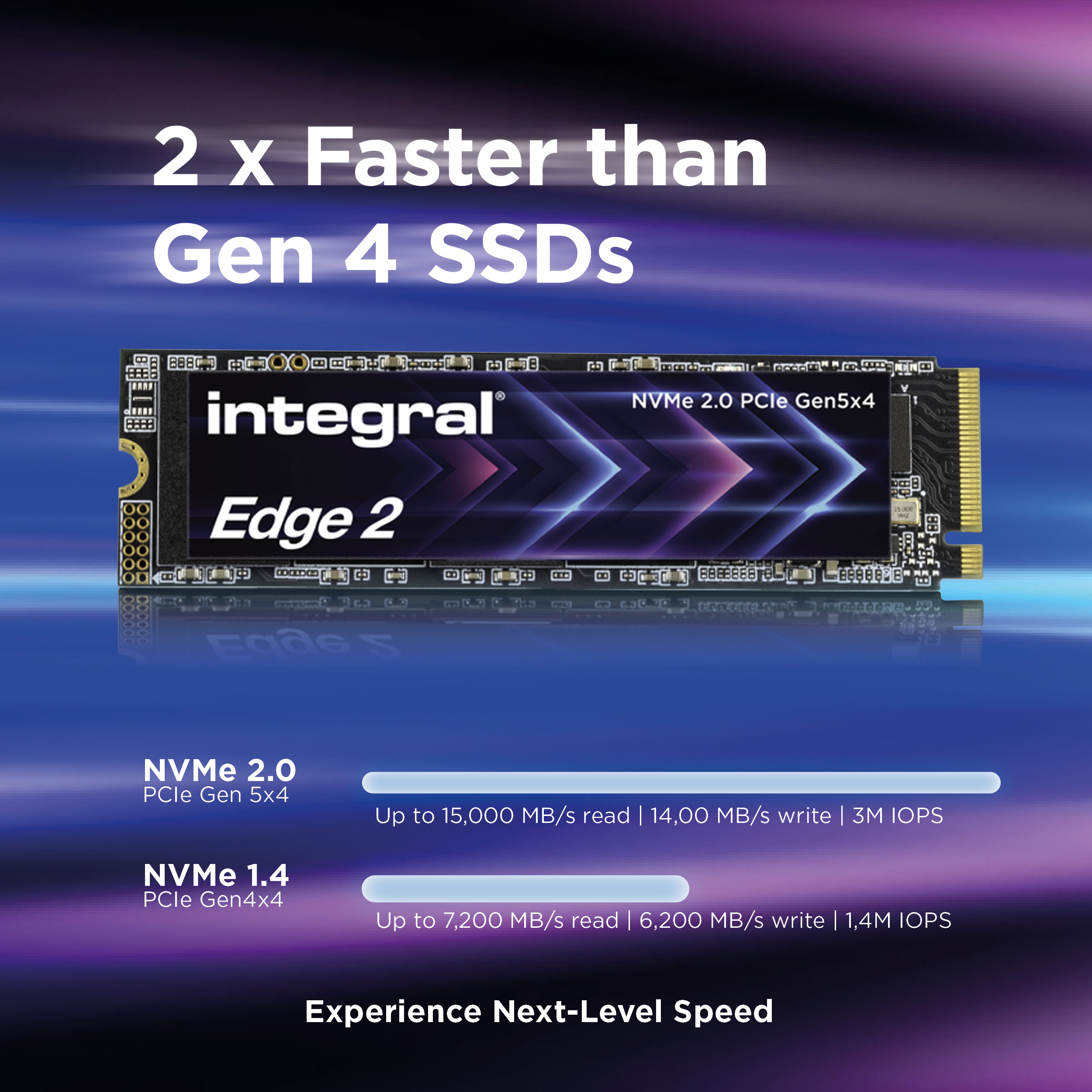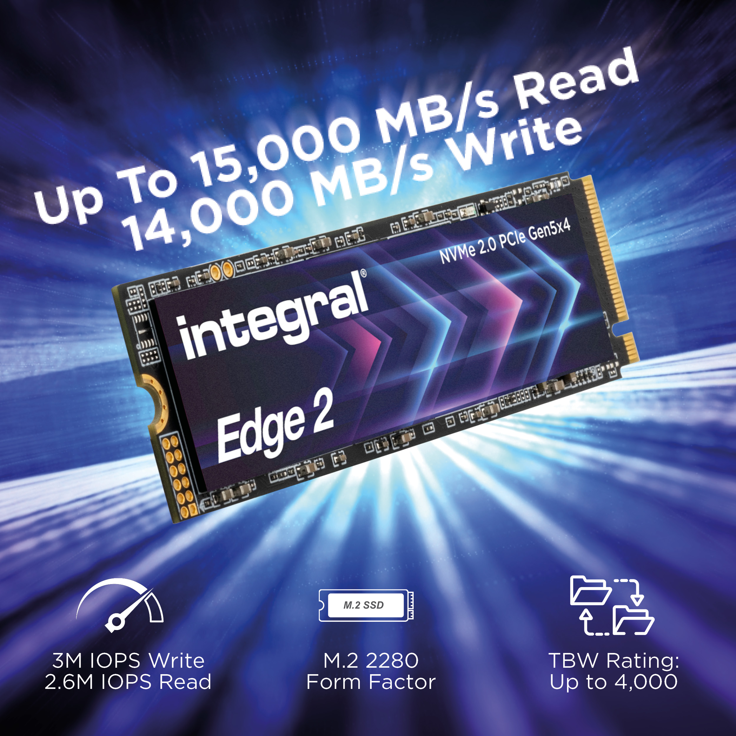 Experience next-generation speed with Integral Edge 2 Gen 5 M.2 2280 NVMe SSD, powered by the Phison E28 controller. Delivering read speeds of up to 15,000 MB/s and write speeds up to 14,000 MB/s, it provides instant access to games, apps and large files.