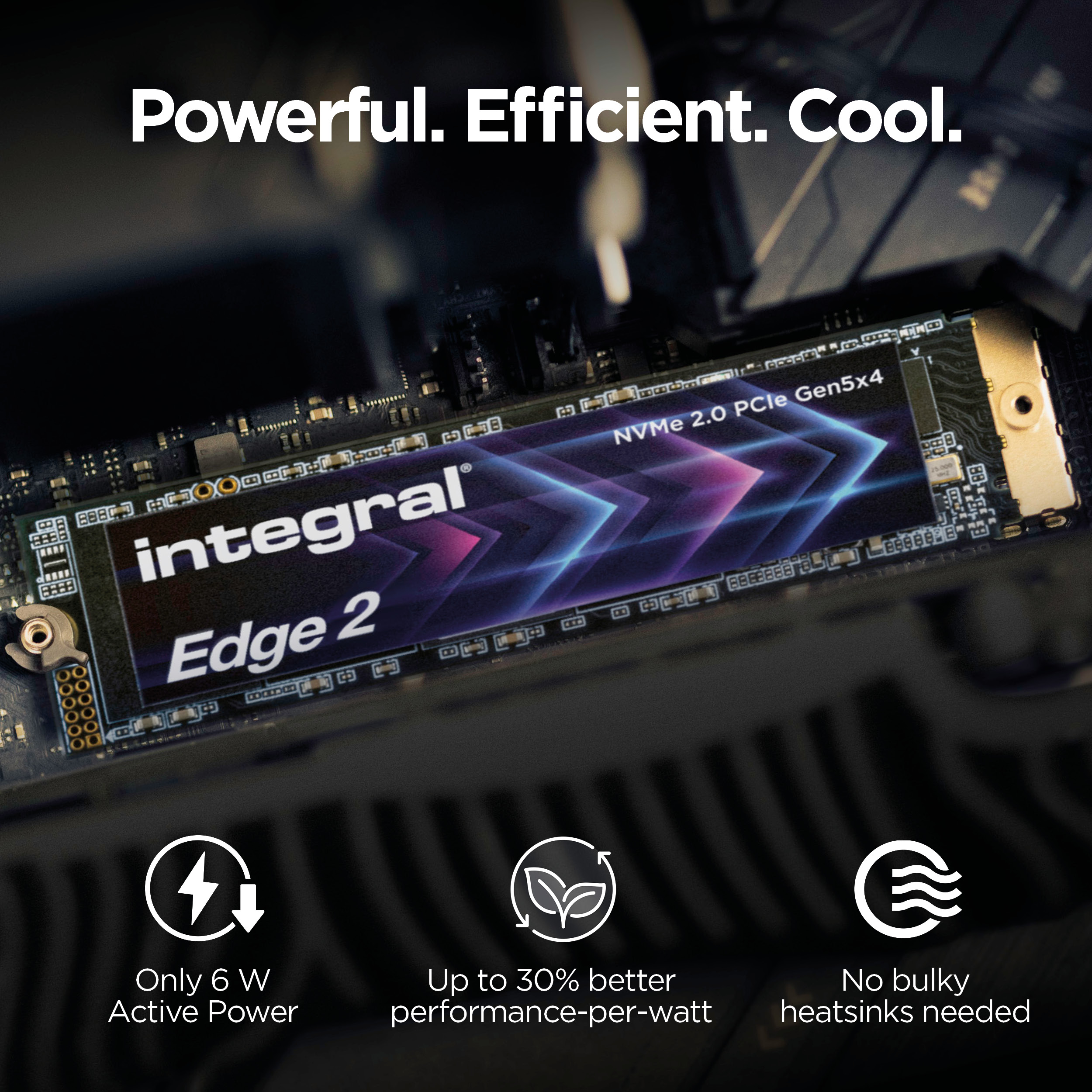 Experience next-generation speed with Integral Edge 2 Gen 5 M.2 2280 PCIe NVMe SSD, powered by the Phison E28 controller.